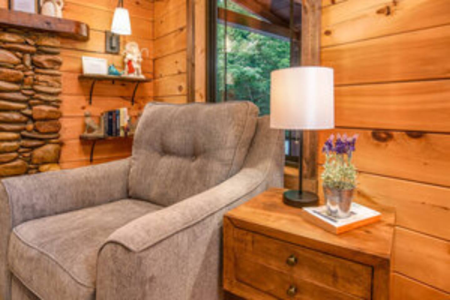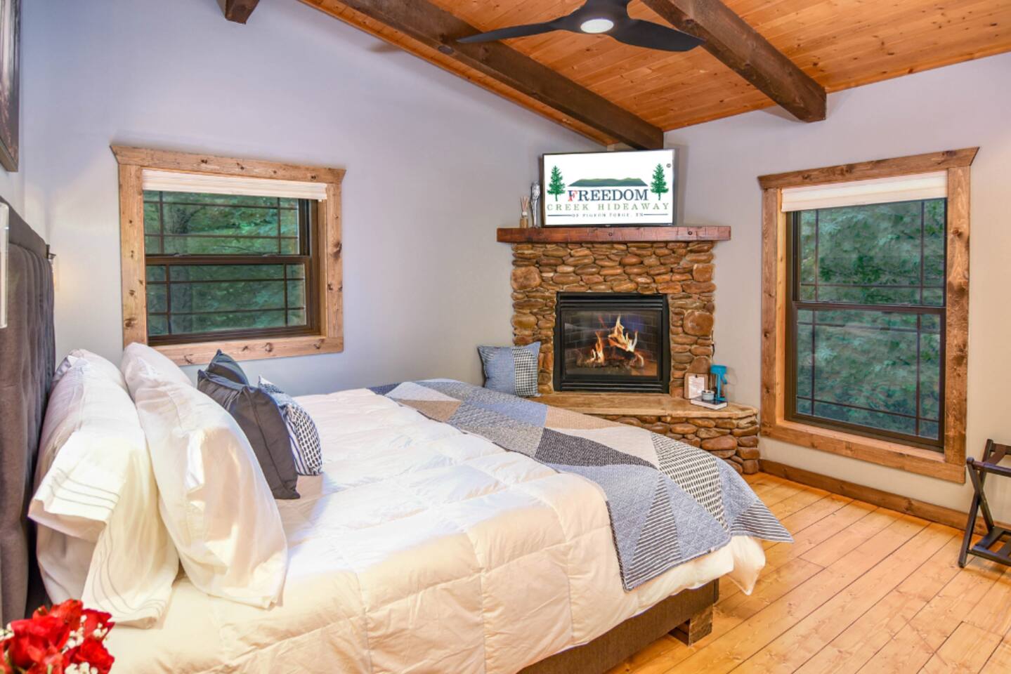 5 Things people LOVE about this cabin: #1: Newly renovated - latest technology #2: Comfortable King bed #3: Two gas fireplaces #4: Pet-friendly #5: Screened-in porch 5 things guests APPRECIATE about the host: #1: Responsive #2: Responsible #3: Attentive #4: Friendly #5: Supporting a Gulf War veteran 5 things to CONSIDER before booking: #1: Proximity to everything #2: Under a mile from Parkway #3: Secluded neighborhood #4: Quiet surroundings and peaceful #5: A home away from home Okay - now that we've got that out of the way, let's talk more about this gorgeous cabin! The Freedom Creek Hideaway cabin is conveniently located in a heavily wooded area, providing privacy in Pigeon Forge, one of East Tennessee's iconic and creative cities. It is less than a mile from Parkway, and Sevierville and Gatlinburg are just seven miles away. The architectural design is beautiful and unlike any other cabin in the area for couples. It's incredibly quiet and spacious, featuring cozy furnishings with a modern décor. From the minute you walk in, you will fall in love with how relaxed you feel. The kitchen is fully equipped with everything you would expect in a true chef's kitchen—from all-new appliances, pots, pans, to a coffee machine, toaster, blender, spices, and everything else you can think of to cook at home comfortably. The master bedroom is entirely new. It features a comfortable memory foam king-size bed and plenty of extra fluffy pillows. Additionally, the master suite features a spacious closet with an organizer for extra storage, as well as a clothes washer and dryer for added convenience. Experience ultimate comfort in the living room with a brand-new queen sofa sleeper and a cozy chair, perfect for unwinding after a day of adventure. Enjoy movie nights like never before with a 55" Smart 4K Roku TV and surround sound. Plus, stay connected with high-speed Internet, including WiFi. We take pride in being among the few Airbnb listings that welcome pets. We have incorporated extra amenities for your four-legged companions, should you bring them along! The kitchen features a spacious built-in crate and a doggie welcome mat, along with a blanket on the front porch, for your furry friends. We also provide pet-friendly blankets and dog dishes. If you have more than one dog, we have an additional large dog crate available. There is a one-time fee of $155 for up to three dogs, regardless of their size or weight. We'll send you a pet-friendly fee request just before your arrival, after your reservation is confirmed. If you're ready to spend more time outdoors, head to the back screened-in porch to unwind in your secluded hot tub. It's tranquil and highly private. Freedom Creek Hideaway is such a thoughtfully designed space. These standards capture the style, comfort, and hospitality elements that Airbnb guests love the most. Thanks to the fantastic feedback from our guests, we've become a top-performing host and a hospitality leader in Pigeon Forge. Unforgettable stays begin and end with our commitment to genuine care and exceptional service, personalized with a special touch. We take immense pride in offering our unique brand of hospitality. As our valued guest, you can expect a warm welcome, unparalleled flexibility, and a steadfast commitment to making things right.